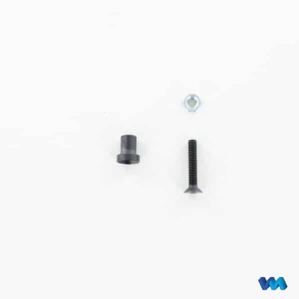 Königsbolzen Wedico, Maßstab 1/16, aus gehärtetem Stahl, mit Befestigungsschraube M3, Abm.: Durchmesser 7mm , Durchmesser Bund 4,8mm, Höhe 8mm, Inhalt: 1 Königsbolzen, 1 Befestigungsschraube M3x16 + Mutter M3